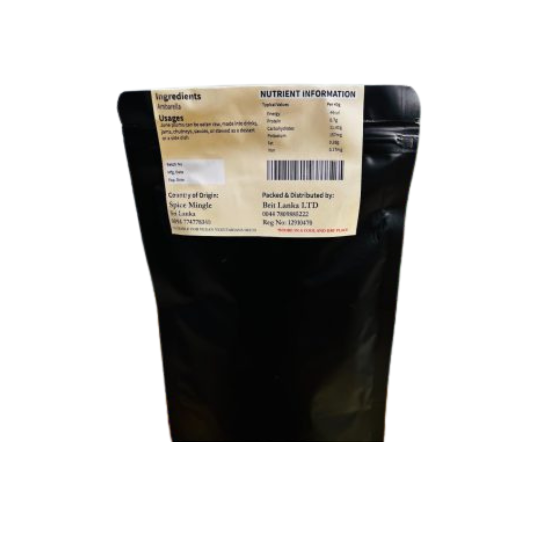 Dehydrated June Plum chips are prepared from fresh Ceylon June Plums (Ambarella). The fruits are sliced and dehydrated to remove moisture while keeping their natural texture. Each pack contains 100 g of firm, ready-to-use chips. These Ambarella chips can be added directly to recipes, used in cooking, or eaten as...